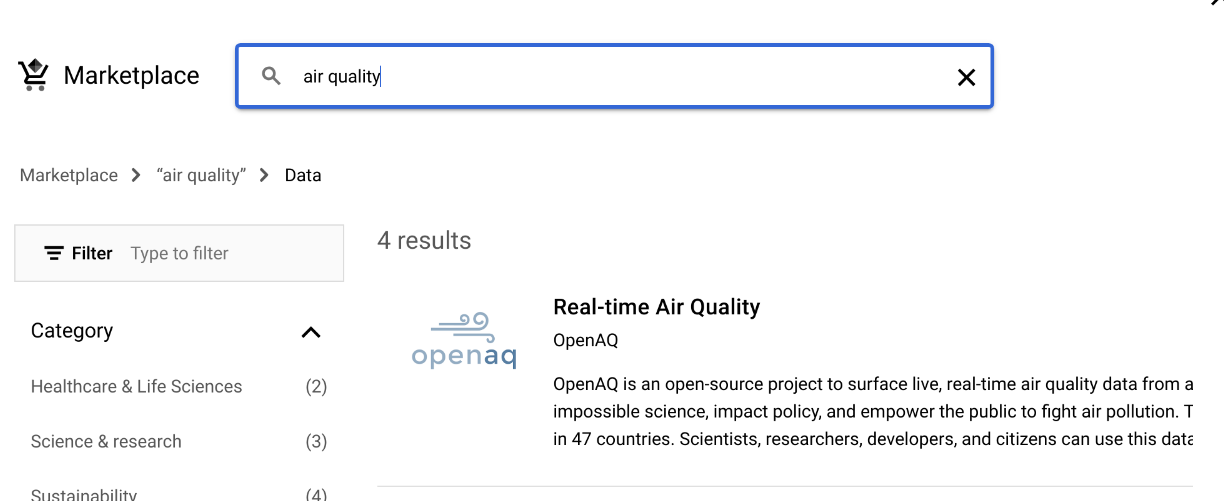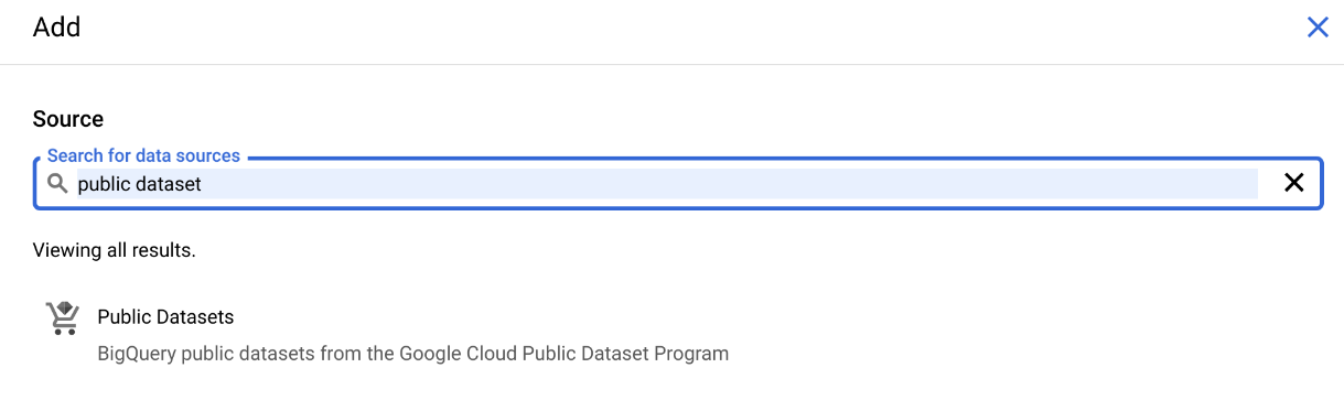 Enter “public dataset” in the search bar: