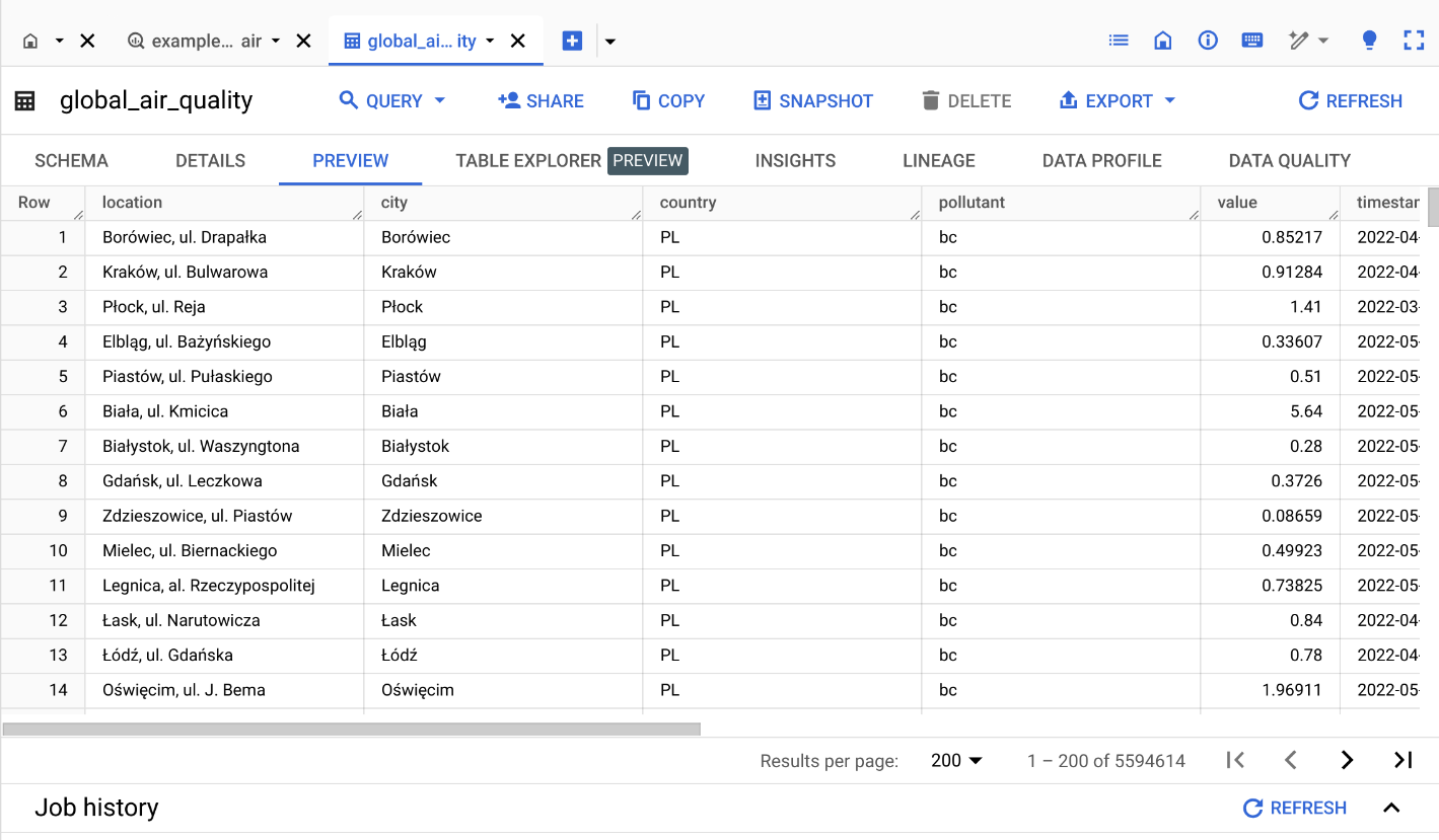 bigquery-public-data.openaq.global_air_quality dataset:To start querying the dataset, you can click on “Home” button then click on “SQL QUERY”: