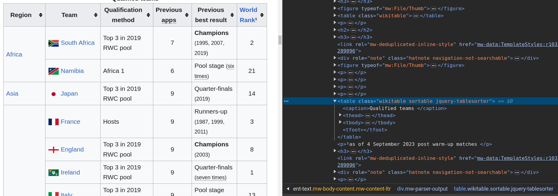 pd.read_html(str(soup))[0].).class="wikitable"..).class="wikitable sortable".table immediately after four p.robots.txt and Terms of Service (ToS) of websites.robots.txt (see https://cran.r-project.org/robots.txt for instance).import time, random, requests
